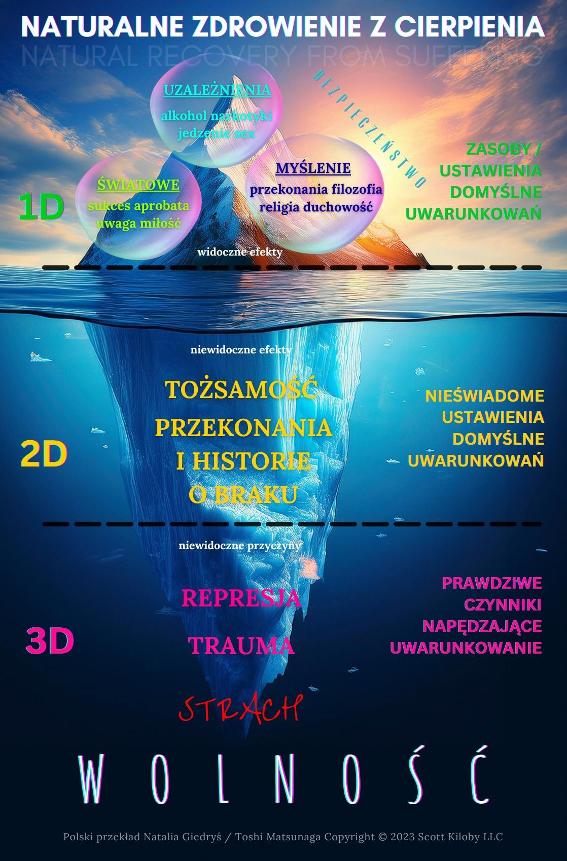 Lodowiec ilustrujący główny dualizm pomiędzy świadomością a nieuświadomionym mechanizmem uwarunkowania.